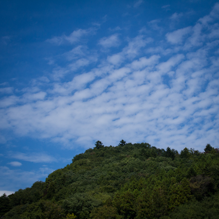 色づくまでにはあとひと月くらいかかるね。杉の植林が多いのでポツポツって感じかな。そうか、これ鰯雲だ、鱗と間違えたな。鰯のオリーブオイル漬、おいしそうだね、銀座のバールで缶のまま温め、後載せオンローリエでそんまま出てくる。レトロなデザインの缶を白い皿に載せて。いいプレゼンだと思ったよ