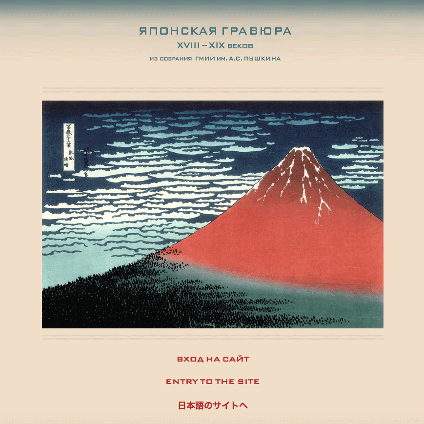 JTプロジェクトスポンサーの世紀プーシキン美術館所蔵浮世絵コレクションインターネット美術館で18世紀中期から19~20世紀転換期までの日本の絵師たちが制作した版画600点を2年かけてデジタル化。作品をクリックすると別ウィンドで拡大縮小し、ウォーターマーク入りの作品が現れる。http://www.japaneseprints.ru/intro/