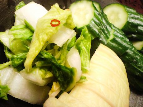 きゅうりぬか漬け だいこんぬか漬け はくさい漬け。 だいこん、はくさいが おいしくなってきました。 はくさいはひとかぶ漬けた ときに出たはんぱ「くず」を きざんで一晩、漬けたもの。 これさえあればさけの「あて」にごはんに …