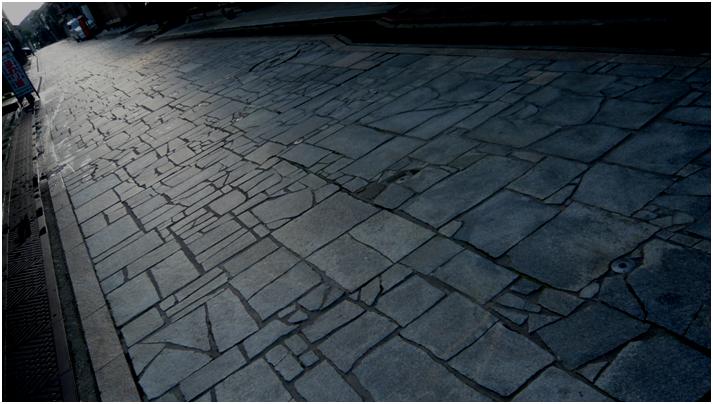 格子戸。 瓦屋根。 煉瓦。 石田畳。