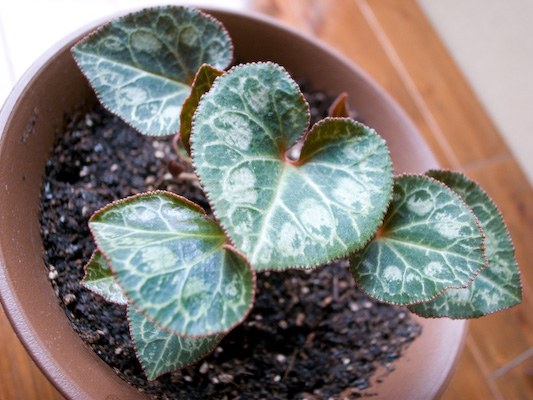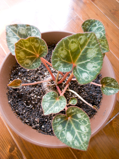 22日目から比べ、葉っぱは大きくなっているのですが ほんとうに花は咲くのでしょうか? シクラメン成長記2011年版