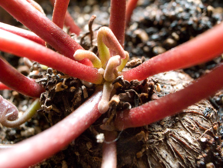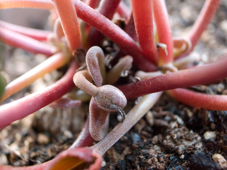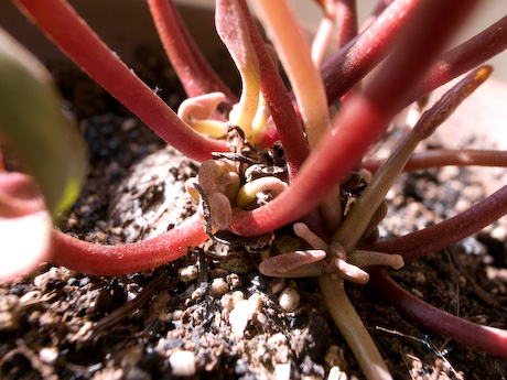 いちばんおおきいつぼみが3ミリ位 数は・・・ 7から9つ位 去年に比べるとだいぶ育ちがいいです。 シクラメン成長記2011年版